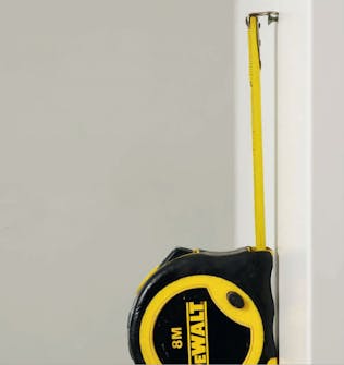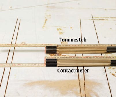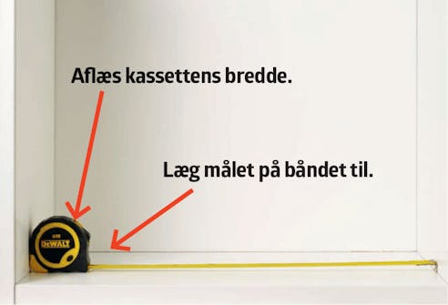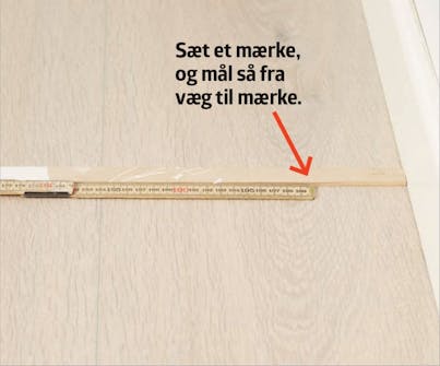 Mål afstanden mellem fx to vægge ad to omgange: Brug en malerpind til at strege første mål op, og mål fra væg til din streg.
