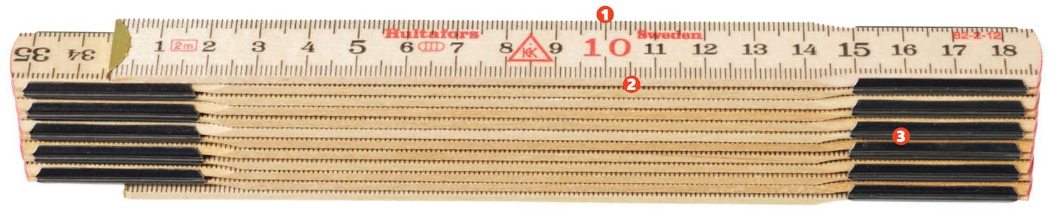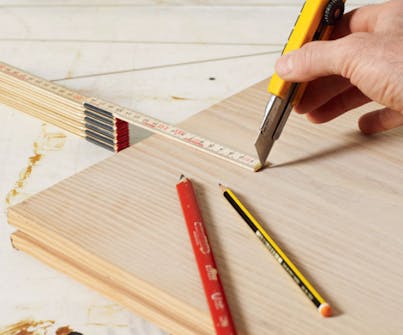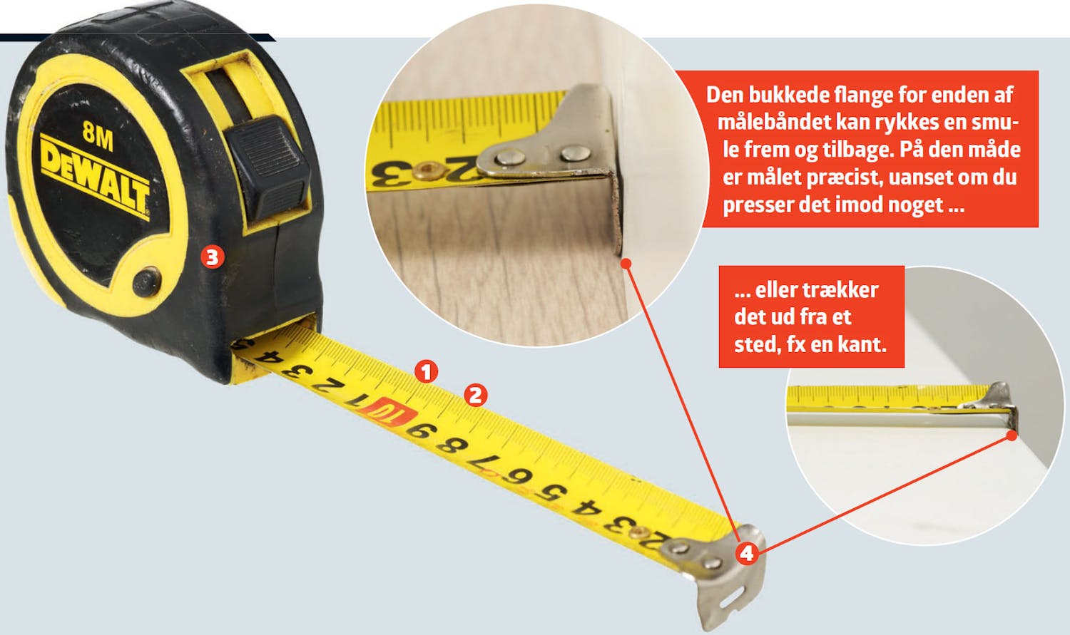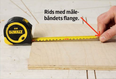 På en plade eller et bræt behøver du ikke at sætte mål af med en blyant. Du kan nemlig bruge målebåndets flange som ridseværktøj på de fleste overflader.