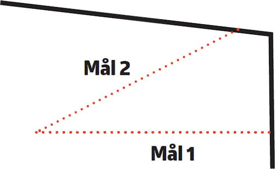 Hvor mange grader er det skrå loft? Det kan en del laserafstandsmålere regne ud for dig, hvis du blot giver dem to mål: en afstand til væggen og en til loftet. Det er Pythagoras’ læresætning om a2 + b2 = c2, der er indkodet i måleren.