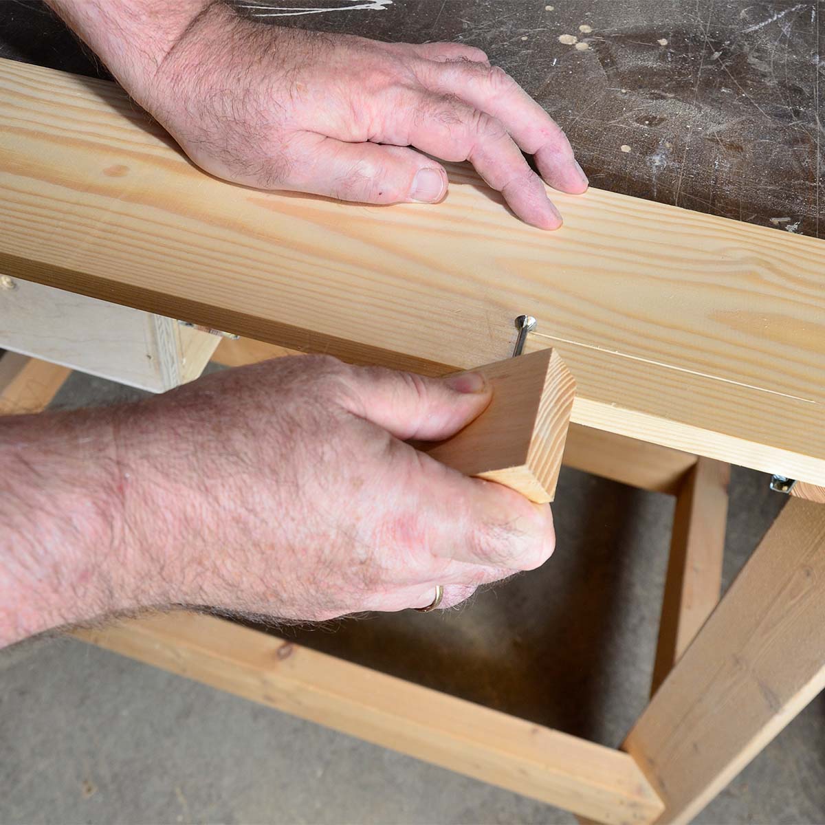 To lister er alt, du har brug for, hvis du skal måle op et sted, hvor tommestokken eller målebåndet ikke dur. Stød listerne mod kanterne af det, der skal måles, og sæt en streg på den ene pind, så listernes samlede længde til sidst kan måles. Målemetoden er ideel til at måle indvendige mål, hvor tommestokken ikke passer.