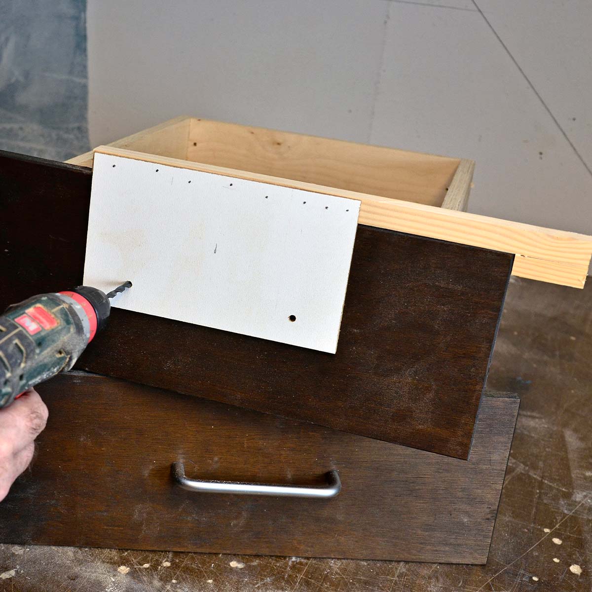 At køkkengrebene skal monteres, er ofte det sidste, der “bare lige” skal ordnes i det splinternye køkken. Men det er også en af de ting, der bare skal sidde lige i skabet. Det kan du sikre ved at lave en nem lille skabelon.