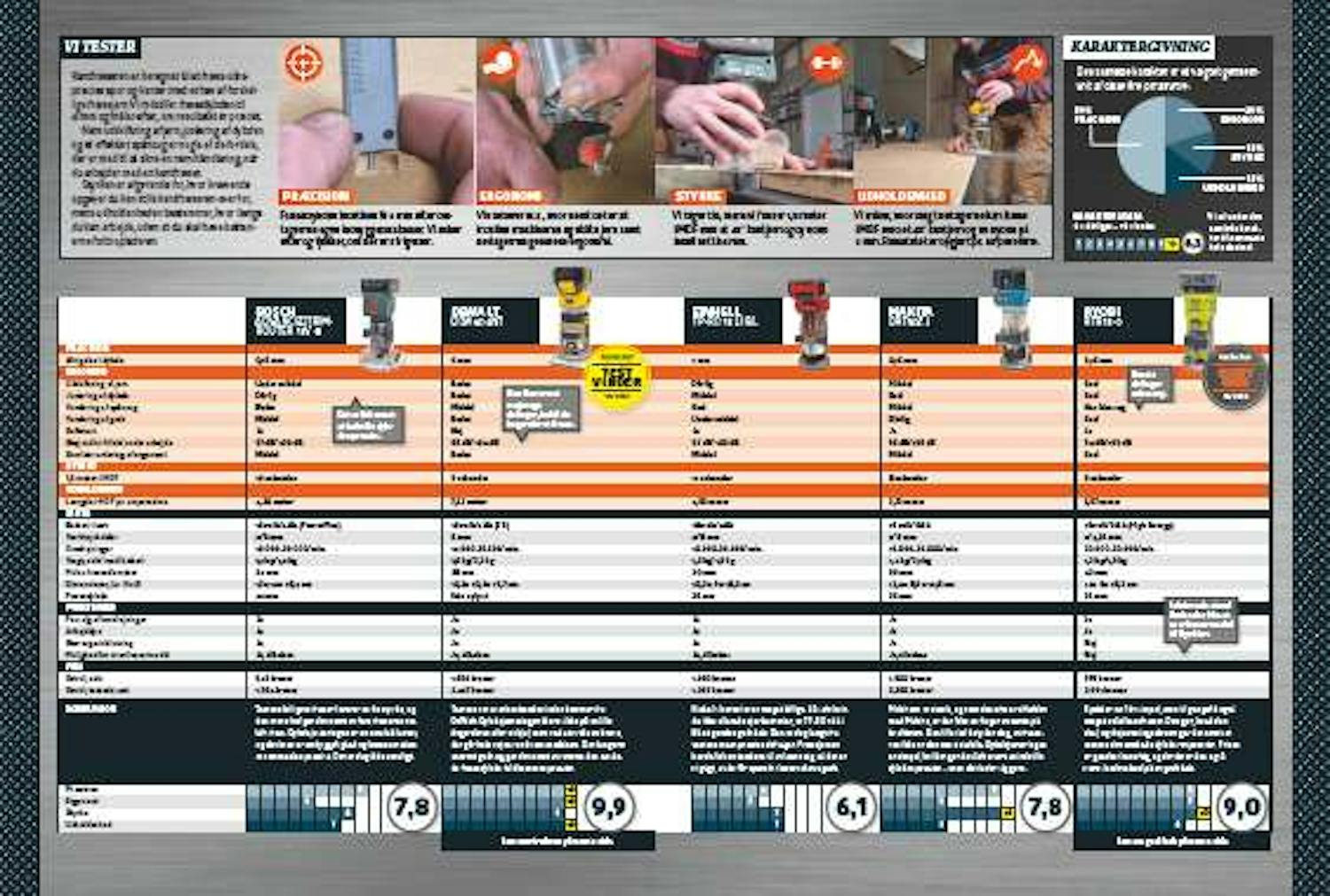Kantfræseren fra DeWalt løber med sejren i tre af fire tests og er derfor også testens klare vinder. Det er især præcisionen og brugervenligheden, der får den til at stå frem i feltet.