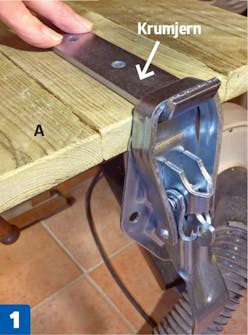 Hæng en lukket hægteluk-ker på krumjernet, og find krumjernets optimale placering, hvor hægtelukkeren lige akkurat rammer langsidens (A) kant.