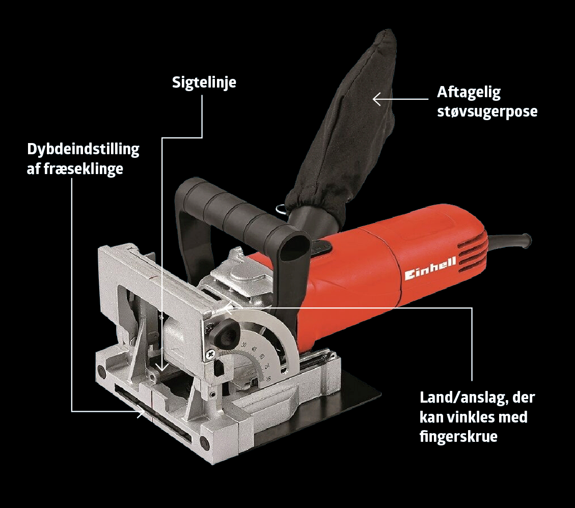 Højden på landet kan indstilles i forhold til fræseklingen, så dyvlen kan placeres korrekt uanset materialets tykkelse.