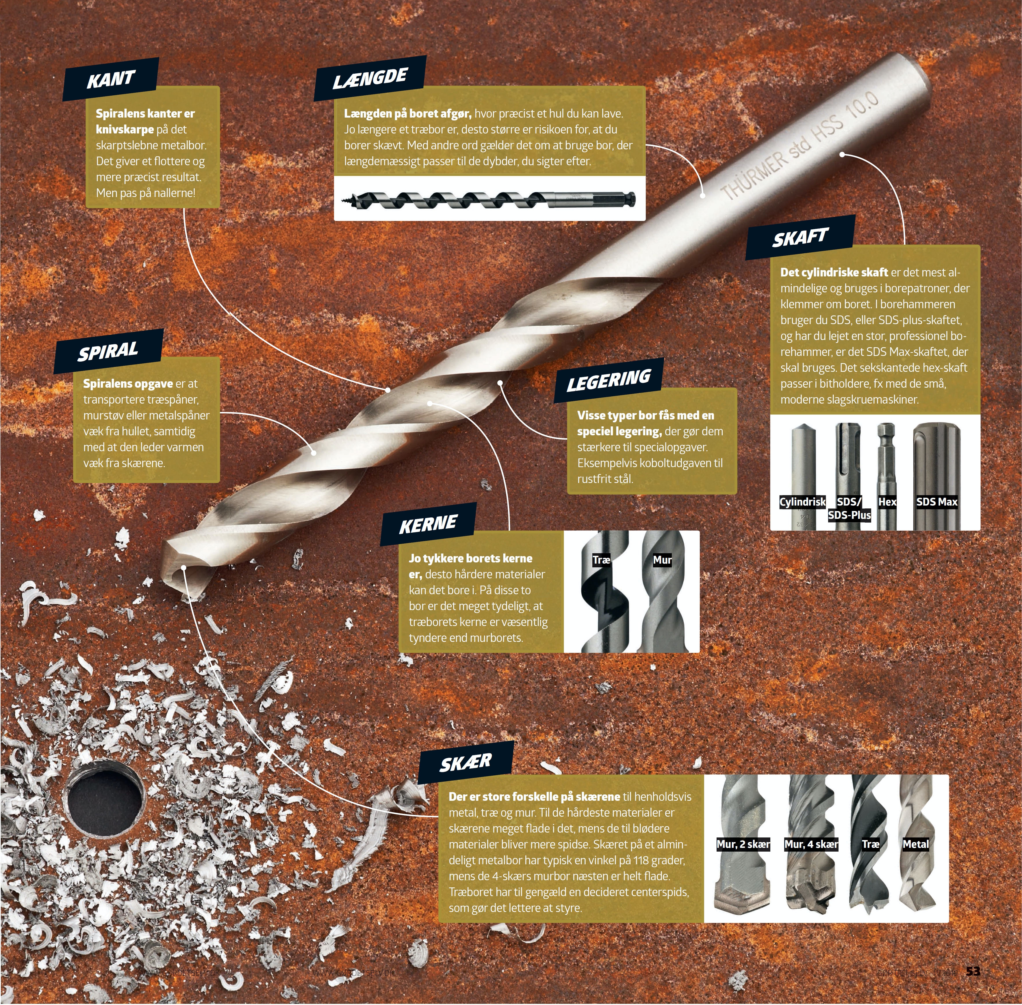 SLEBET METALBOR MED HM-SPIDS: Kommer du ud for at skulle bore i støbejern eller hærdet stål, fx hvis du vil lave flere huller i et beslag, så er det det slebne metalbor med en spids af hårdtmetal, du skal bruge. Pas på med ikke at bore for hurtigt, for så overopheder spidsen og bliver sløv.