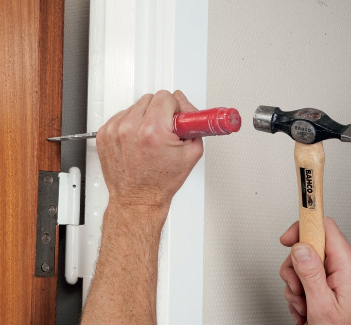 Ret døren med en hængselbukker eller andet, hvis det er nødvendigt.