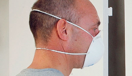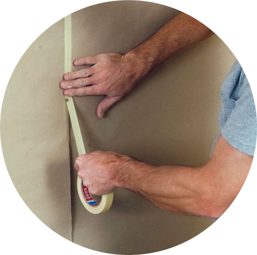 I løbet af natten har støvet fra lørdagens slibearbejde lagt sig, så du nu kan få det væk med støvsugeren. Hvis dørene står i det rum, som du har slebet i, tørrer du dem af en gang til, inden du starter sprøjtepistolen. Find en væg, du kan sprøjtemale op ad, og dæk både væg og gulv i området af med pap eller filt.