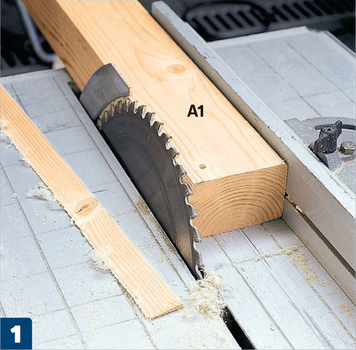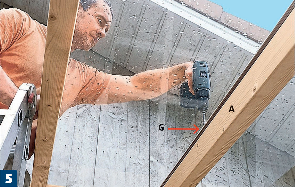 Skær spær (A2, A4, A5, A6 og A7) i en vinkel på 10° i begge ender. Her er en kap-/geringssav genial, men du kan også afsætte vinklen på spærene og bruge en hånd- eller stiksav.
