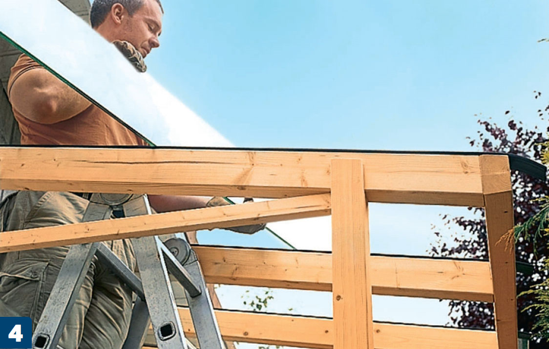 Det kræver præcision at bore hullerne til boltene, og så kræver det en hjælpende hånd, når du skal bakse tagkonstruktionen på plads.