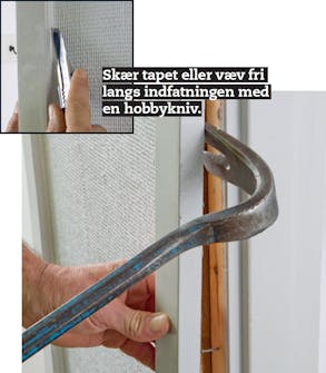 TIPS: Hiv sømmene ud fra bagsiden, så skåner du forsiden af indfatningen.