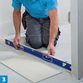 Sæt skinnerne fast på gulvet med sømdyvler (5 x 25 mm). Hvis der er gulvvarme, skal du passe på ikke at bore for dybt. Find evt. varmeslangerne med en multiskanner.