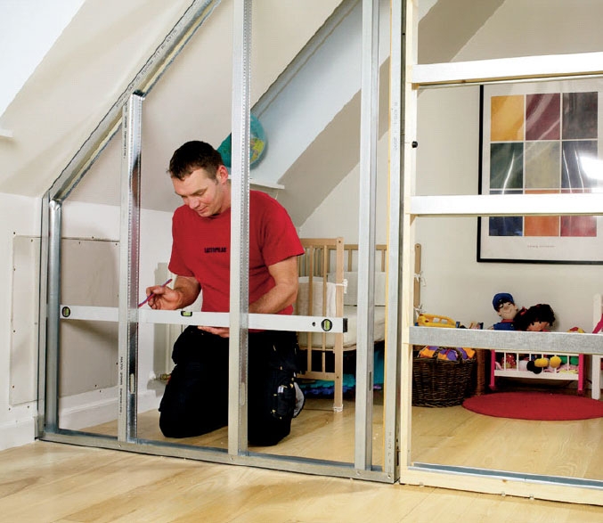 Vi har her valgt at bygge skillevæggen i træ. Det er et materiale, stort set alle gør det selv’ere er fortrolige med, og det kræver ikke andet værktøj end det, du allerede har i kassen.Ulempen ved træ er, at skillerumslægter ofte er mere eller mindre skæve. Derfor vælger vi her at bygge med gulvstrøer, der er limet sammen af mange lag krydsfiner og derfor er snorlige.