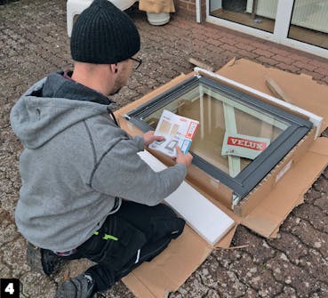 Bestil et vindue, der passer til din vision, og husk at indregne leveringstid. Der findes mange forskellige, der kan tilgodese forskellige designkompromiser. Vi vælger et 78 x 98 cm vindue, selvom et mindre kunne have sparet os for at skære et spær over og lave en udveksling. Til gengæld får vi masser af lys i det nye rum. Til sidst skal du læse montagevejledningen.