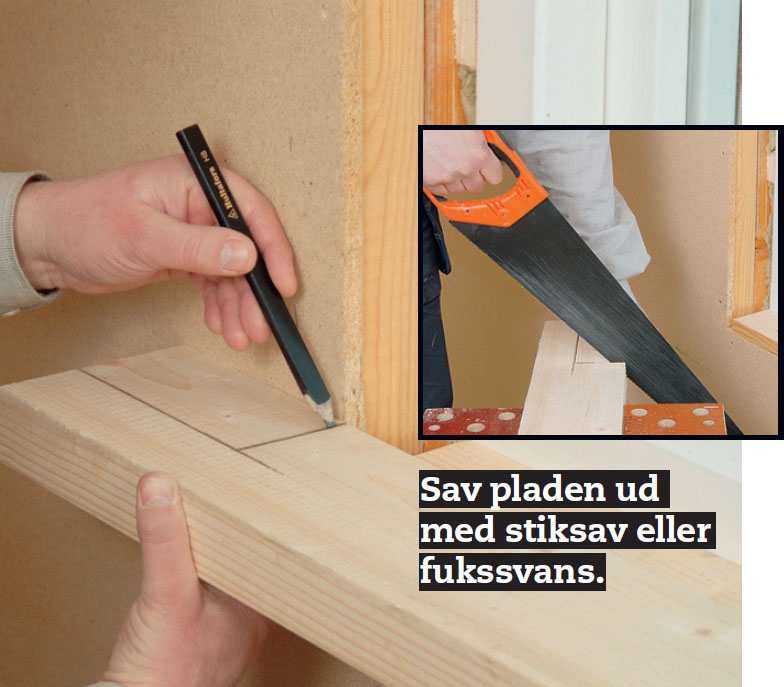 Længde og bredde saves ikke endeligt til med det samme. Her er det nemlig nødvendigt at mærke op, så pladen kommer til at passe nøjagtigt i hullet.